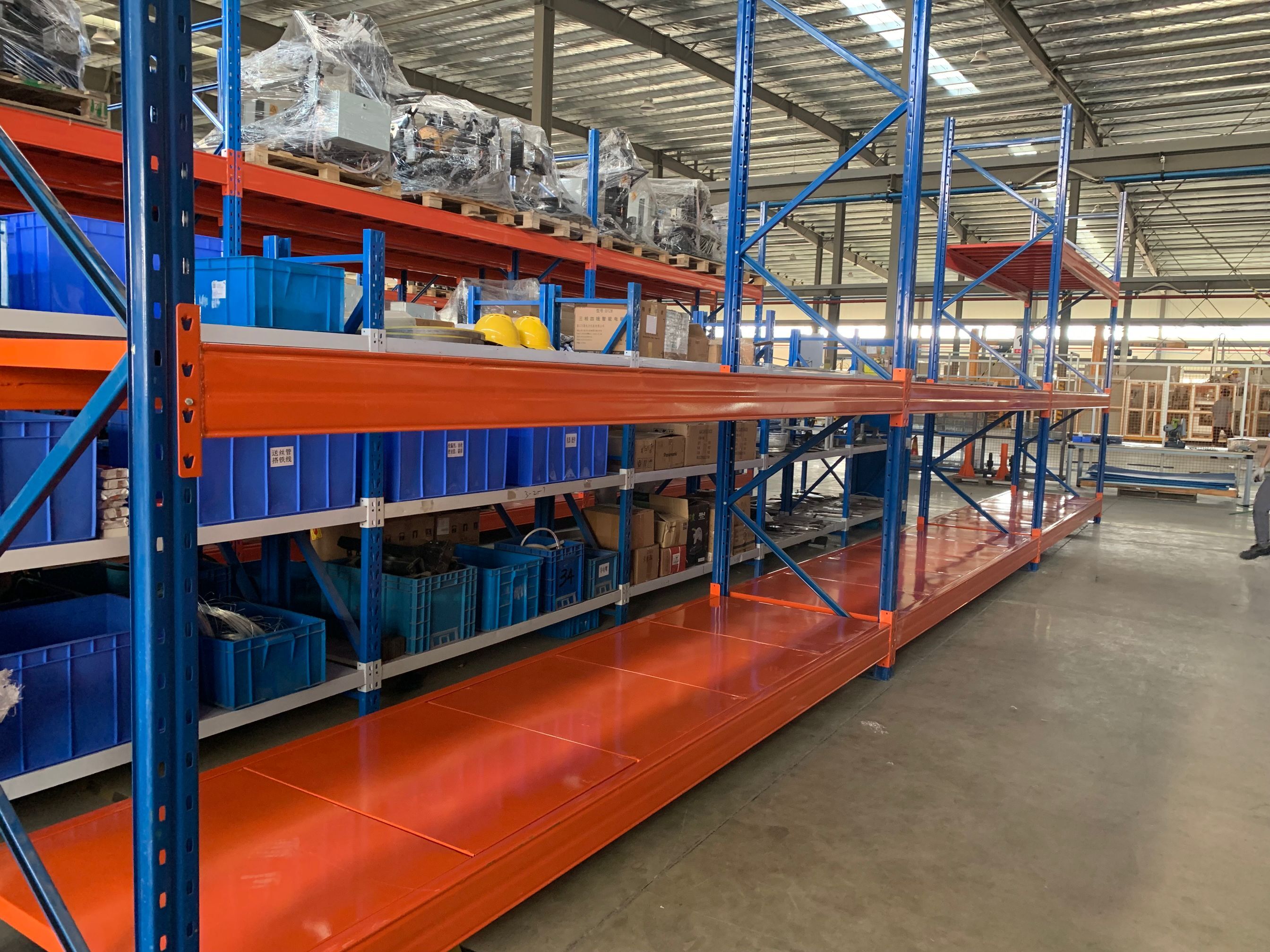 2、每組貨架的橫梁都使用五塊層板鋪滿,以確保重型貨架的穩(wěn)定性和存取貨物安全性。