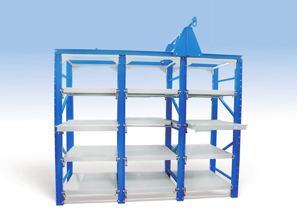 雙向模具 貨架 ,也稱為模具貨架,主要用于存放各種模具;頂部可配備移動式升降機(手動或電動),抽屜底部設(shè)有滾輪軌道,裝載后仍可用小力拉動。附加定位安全裝置安全可靠。